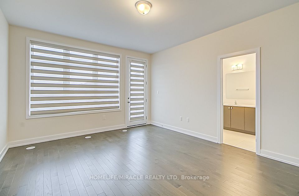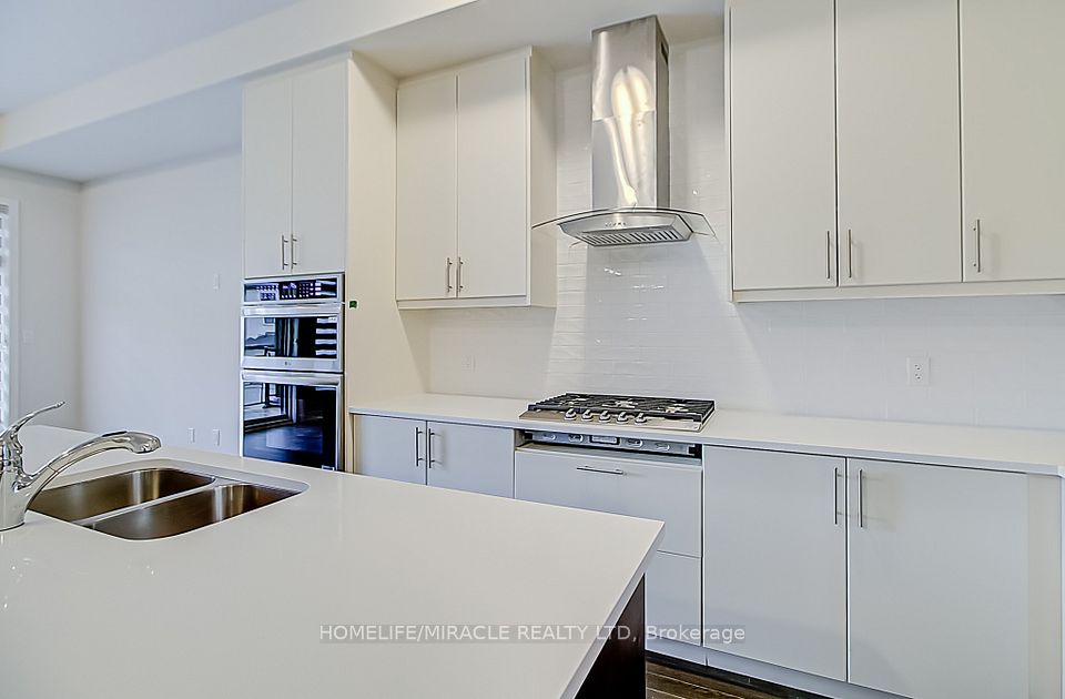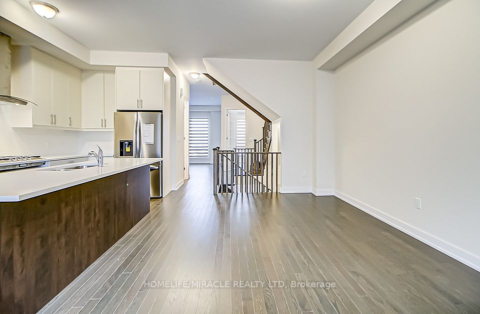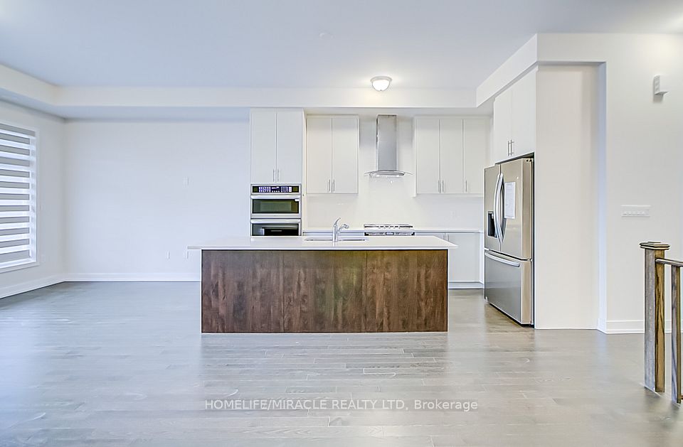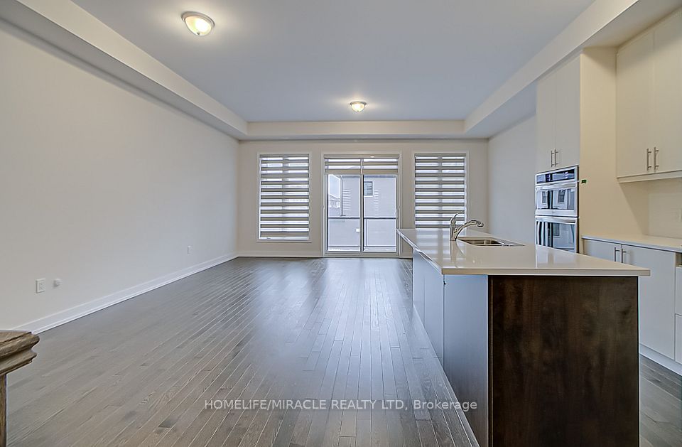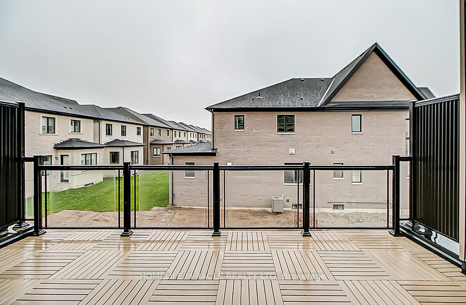 Gorgeous townhome (2,360 sq. ft) facing 4-acre park located in the family friendly community of Joshua Creek. This home features hardwood throughout, countless upgrades including quartz counters, undermount sinks, luxurious vanities, high ceilings (10 ft. on main and 9 ft. on upper) and an elegant oak staircase. Chef's kitchen features B/I Stainless Steel appliances and extended upper cabinets. Primary bedroom has a 5 pc. spa-like ensuite with double vanity, freestanding tub and standing glass shower. Main floor has separate living and family rooms, along with an office. Ground floor is above grade and features another bedroom and an ensuite. Lots of parking with a double car garage and 2 spots on the driveway. Upstairs Laundry. Basement is unfinished for additional storage. Two sprawling terraces for entertaining friends and family. Unbeatable location close to highways, top schools, grocery, restaurants etc.